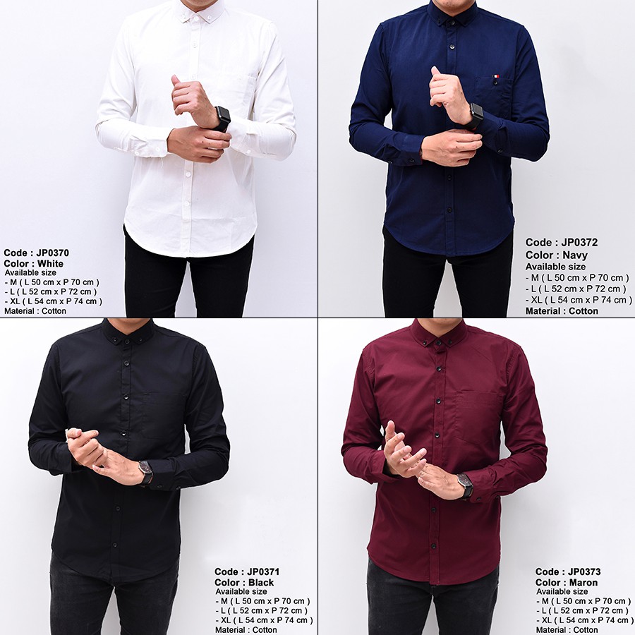 Kemeja Polos Lengan Panjang Putih Hitam Biru Dongker Navy . Sumber Gambar : shopee.co.id